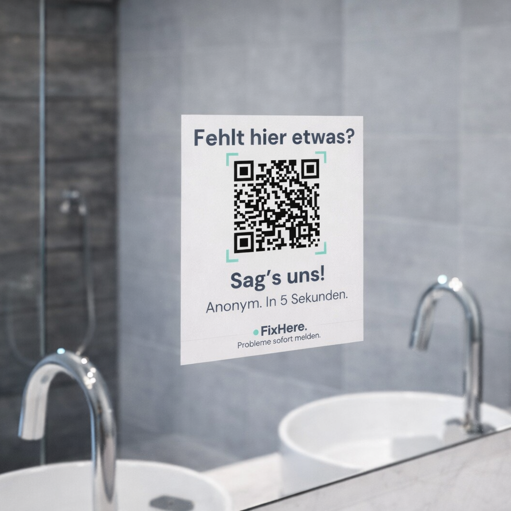 Bringen Sie den Sticker in einem Ihrer Bereiche an, z.B. auf dem Spiegel in einem der WCs.