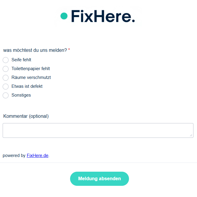 Die Menüpunkte legen Sie fest, der Gast wählt aus, was ihm aufgefallen ist. Dann sendet er die Meldung ab.