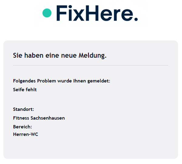 Nach wenigen Sekunden geht die Meldung per E-Mail an eine Adresse Ihrer Wahl - z.B. an Ihre Rezeption.